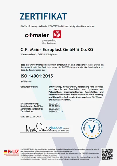 Zertifizierte Qualität und Zuverlässigkeit bei C.F. Maier-TEC